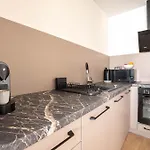 Ideal Apartments Arena includes a balcony, a living room, and a fully equipped kitchen with air conditioning and a washing machine for utmost comfort.